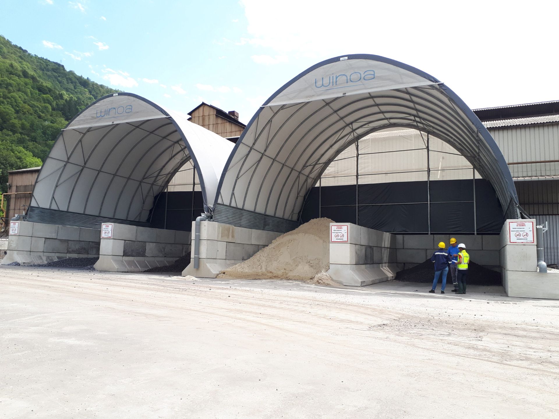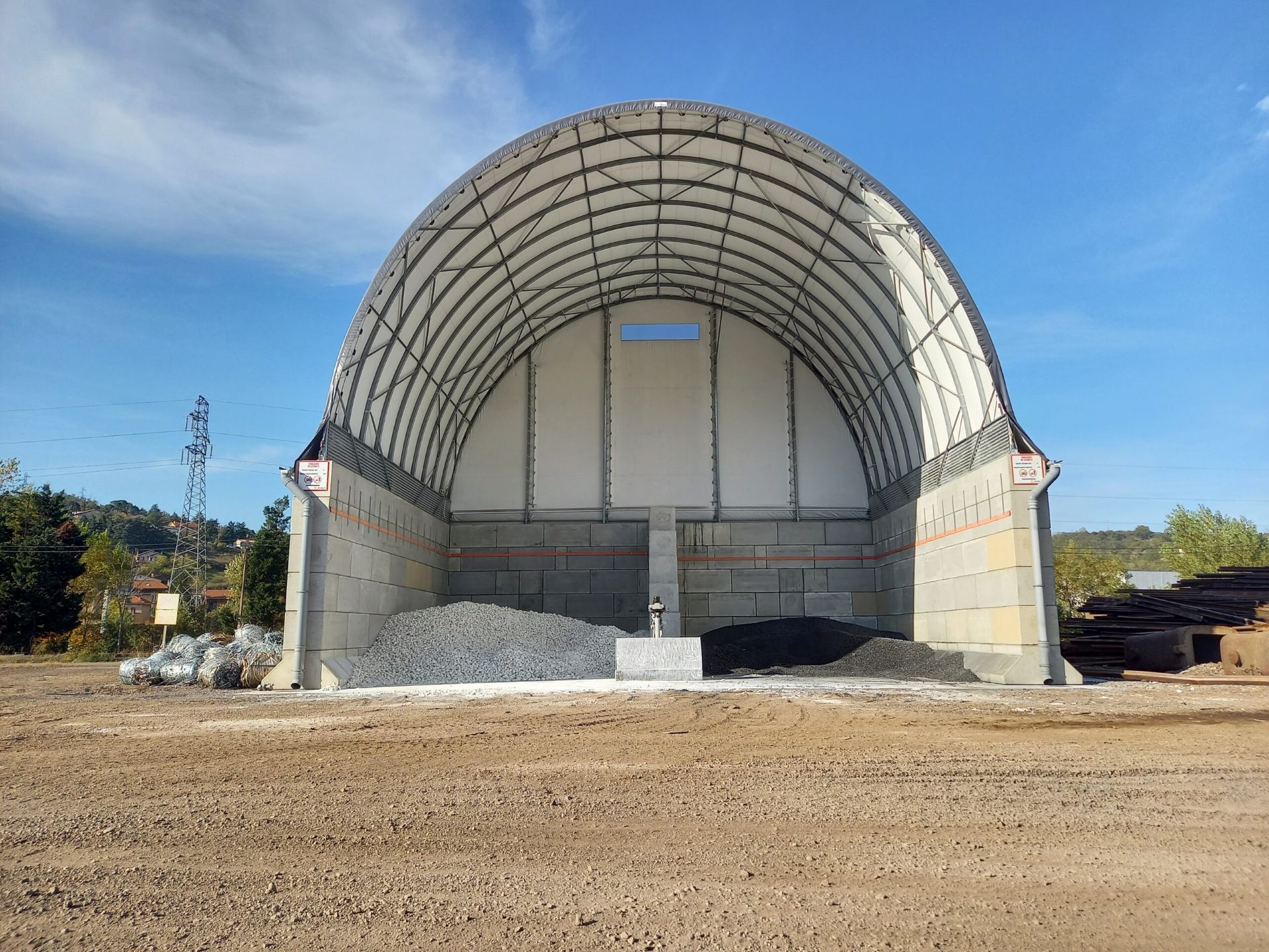 Boogloodsen en industriële overkappingen zijn een efficiënte oplossing voor de opslag van grondstoffen, bulkgoederen en industriële materialen. Door de sterke gebogen staalconstructie ontstaat een grote overspanning zonder interne steunpalen, waardoor machines, vrachtwagens en laadactiviteiten vrij kunnen bewegen. Booghallen worden vaak toegepast bij recyclagebedrijven, betoncentrales, asfaltcentrales, logistieke terminals en industriële opslagplaatsen waar bescherming tegen regen, wind en stof belangrijk is.