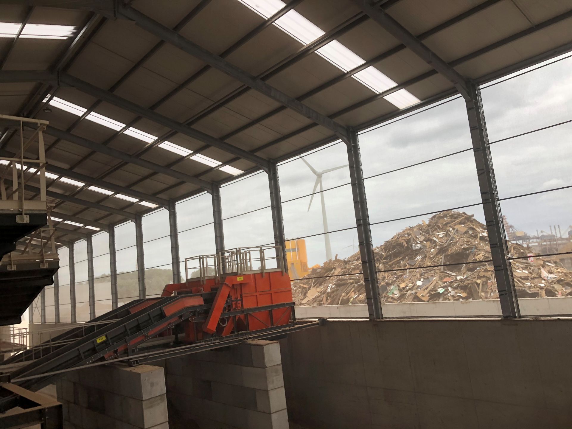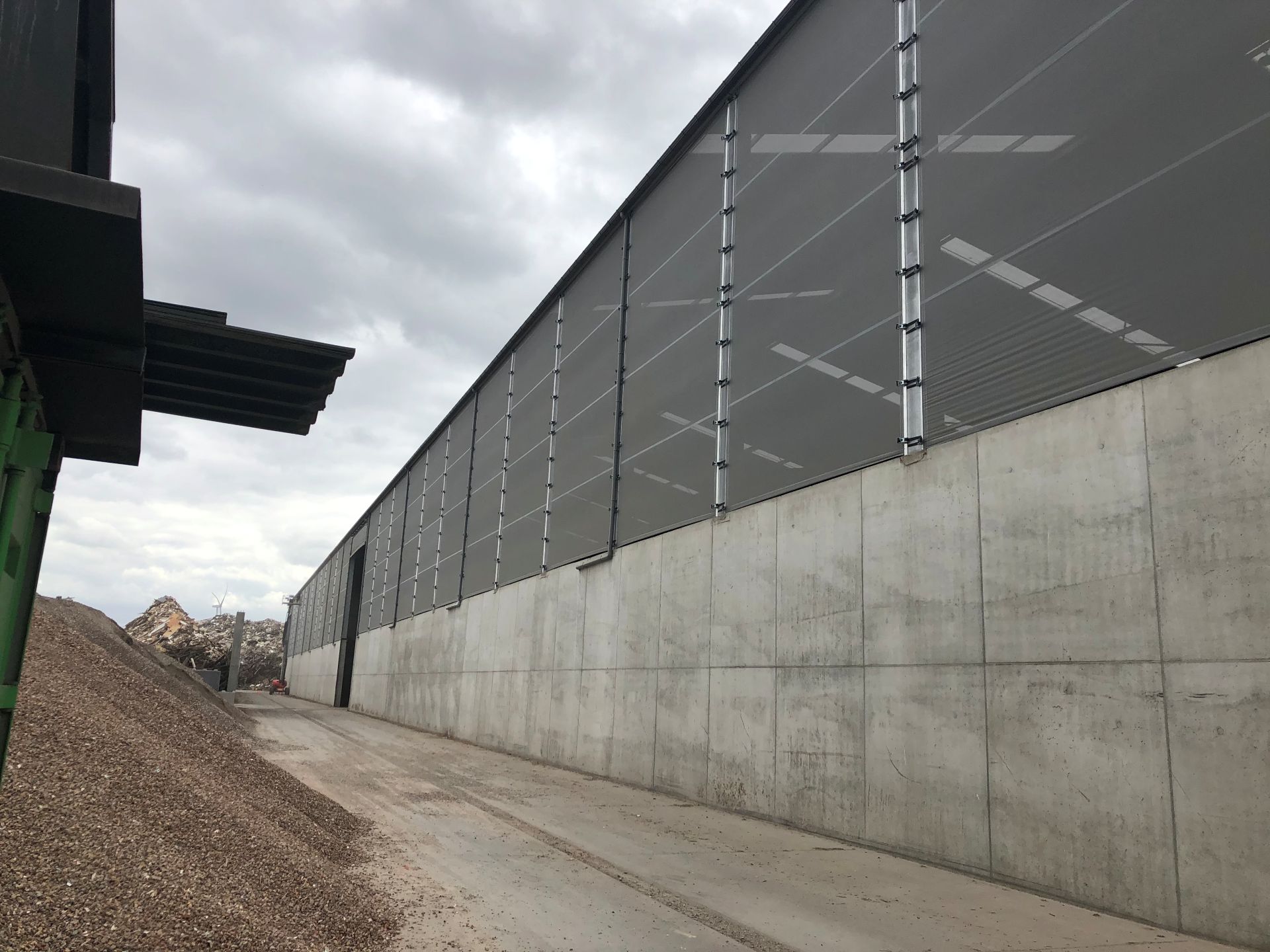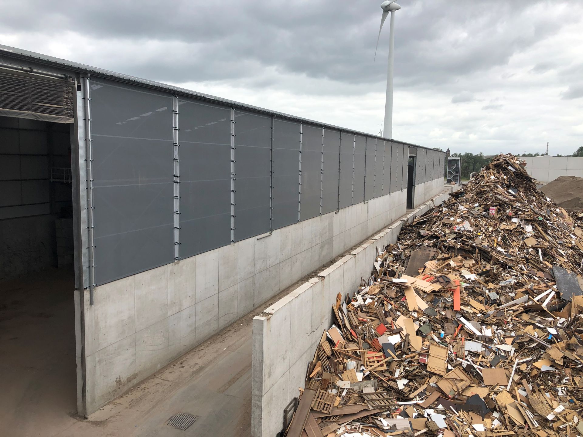 Voor deze recyclagehal werden stofschermen geplaatst rond de schredderinstallatie om stofverspreiding beter onder controle te houden. Door de windthermiek uit de hal te halen wordt rondvliegend stof zowel binnen in de hal als naar de buitenomgeving sterk beperkt. Tegelijk blijven ventilatie en de werking van de installatie behouden. Deze oplossing zorgt voor betere werkomstandigheden en minder stofhinder voor de omgeving. 🌬️♻️🏭