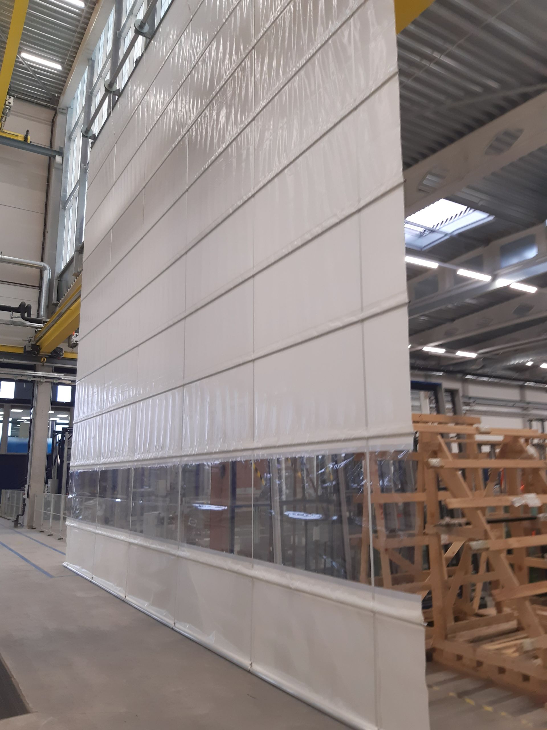 Voor deze testopstelling werd een regelbaar opvouwsysteem met gordijn ontwikkeld voor wind- en regensimulatie. Het systeem laat toe om gecontroleerde weersomstandigheden te creëren en eenvoudig aan te passen tijdens testen. Dankzij de flexibiliteit van het gordijn kan de installatie snel worden geopend of gesloten afhankelijk van de testopstelling.
